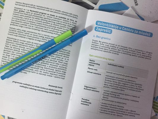 U sklopu projekta “Lokalni volonterski centar Zaprešić” izdana informativna brošura o volonterskim pozicijama u Centru za mladež Zaprešić